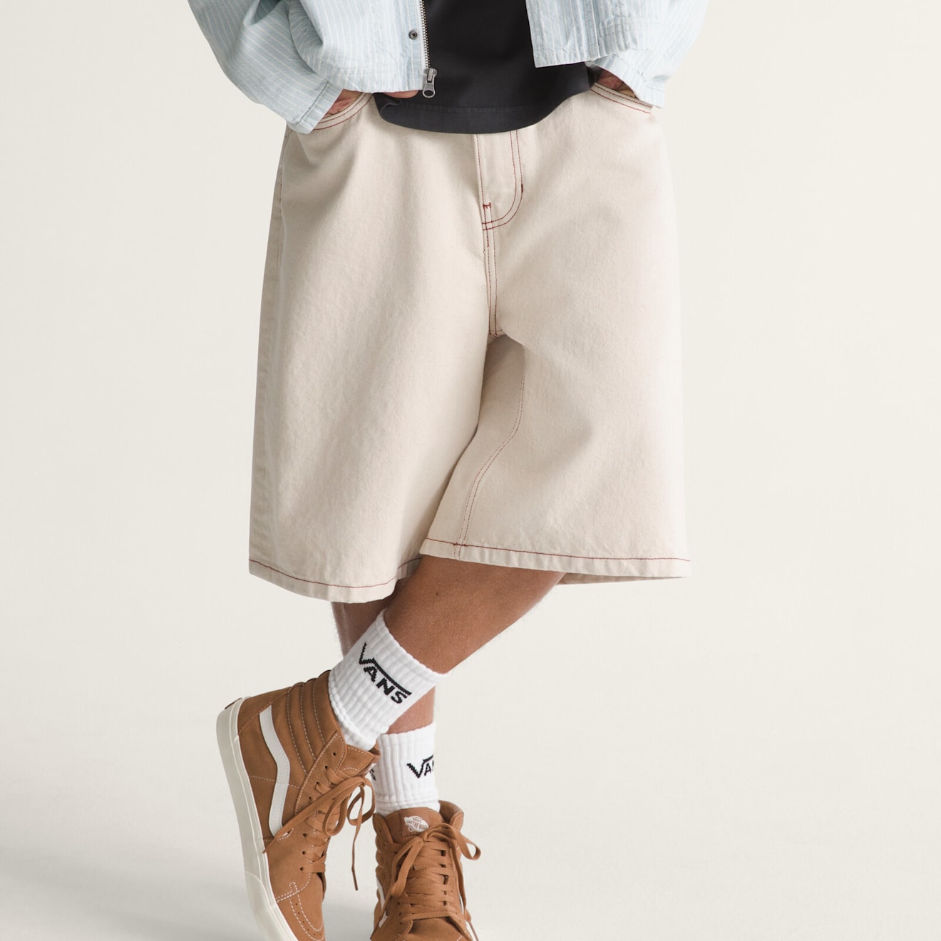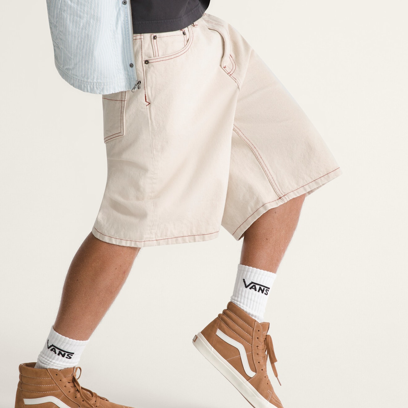체크-5 배기 데님 쇼츠