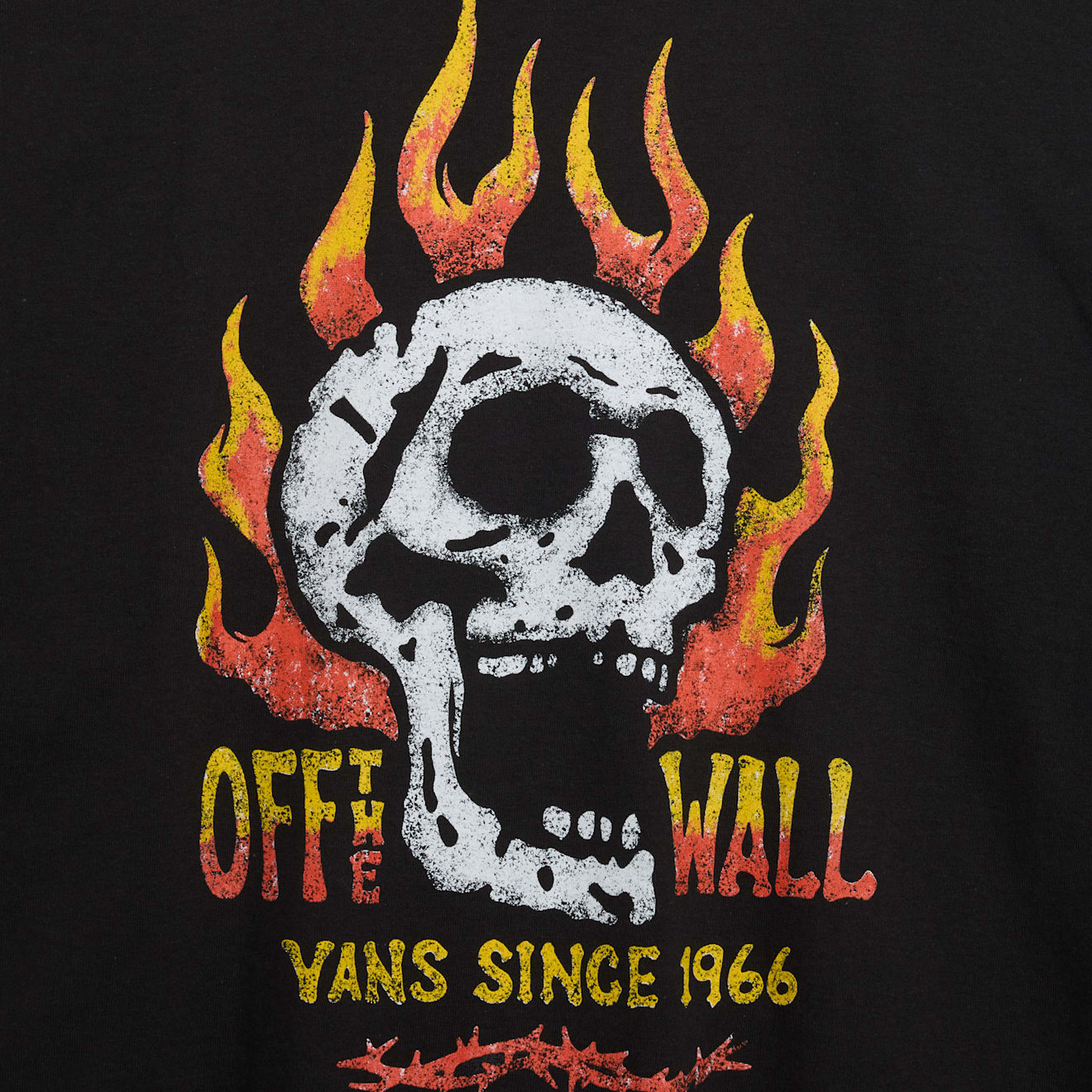 Flaming skull T-shirt with vintage flair.